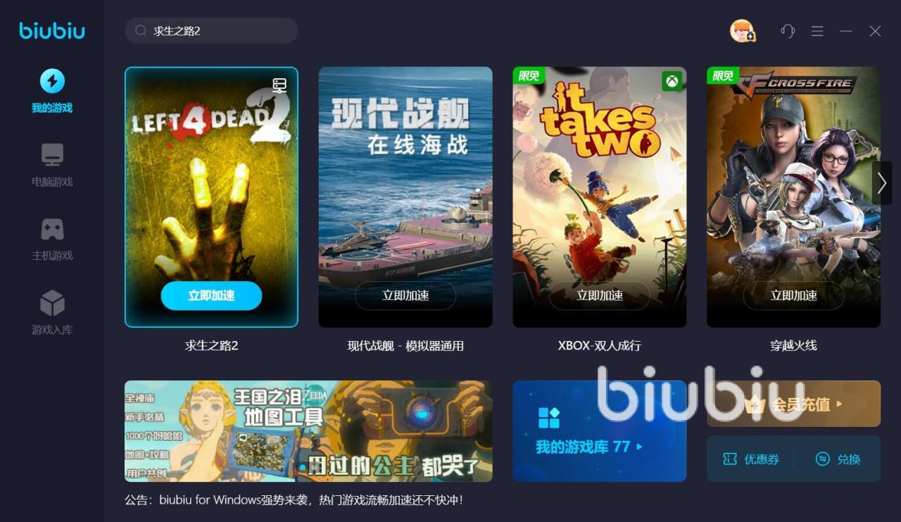 以上就是求生之路2要加速器吗,这类以生存逃生为主的产品,不仅强调个人发挥,更注重团队合作,如果没有队友的辅助,你就算再强,也无法逃出生天。在游戏期间,有biubiu加速器的辅助,取胜或许会容易一些。