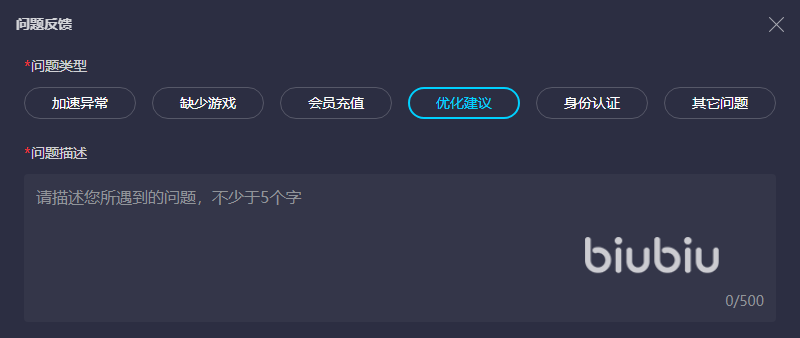 并且,biubiu加速器也是市面上少有非常在意用户使用体验的一个平台,大家可以随时通过问题反馈来提交遇到的不合理的地方,无论是针对优化的建议,还是发现游戏库当中没有自己想要玩的游戏等等问题,都可以直接在反馈当中得到解决,而平台也会因为大家的反馈来不断进行完善。