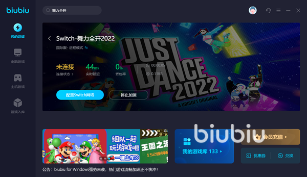 Biubiu通过一些高端的技术给大家带来稳定流畅的游戏加速体验,比如说多区服线路的设定,让我们在游玩的过程中避免出现网络拥堵的情况,一旦ping值波动比较大或者是有明显的上升,就会自动切换到空闲的线路中,这样就能够确保网络连接的质量。除了舞力全开之外,biubiu也支持了大量的游戏作品,我们可以前往游戏库中寻找,或者搜索一下有没有大家正在玩的游戏,觉得不错的话可以参加平台的首充优惠活动。