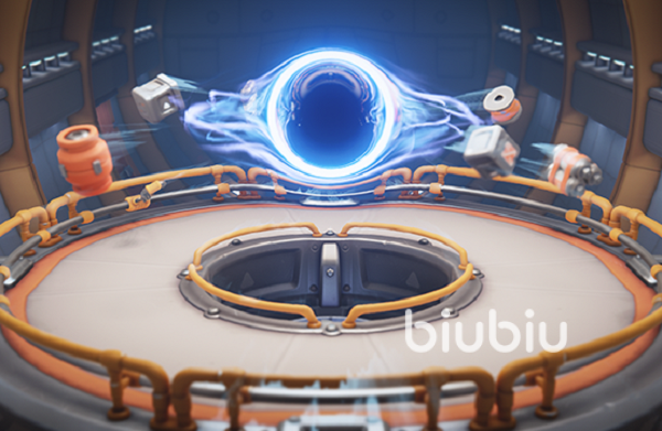黑洞发生器这个场景在刚开始的时候会一切正常,中间会有一个凹陷的地方,角色需要在周围的道路上进行战斗。但每隔一段时间中间区域会升起一个泛着蓝色光圈的黑洞,并且会不断的将周围的角色或者物品吸进去。如果这个时候我们没有抓住固定物被吸进去了,就代表被淘汰了。