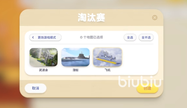 选择好游戏模式后就到了选择地图的环节,如果选择全选按钮,那么到时游戏开始时则会随机选择一个出现。全部确定好后点击创建,这样房间就创建好了。玩动物派对这款游戏推荐搭配一个好的加速器,大家可以使用biubiu加速器,它能让我们畅玩游戏的同时不会遇到网络卡掉线的情况,并且现在新用户注册账号还可以免费体验三天会员加速哦。