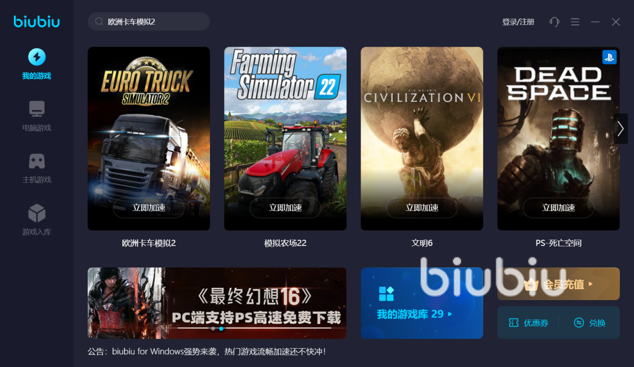 今天分享了欧洲卡车模拟2闪退解决办法,玩家们一定要安装biubiu加速器,轻松解决游戏运行的各种问题,避免延迟高、死机、丢包、无法登录、服务器响应慢等问题,让游戏流畅运行。作为大品牌加速器,这一软件秉持高性价比与稳定运行的原则,为玩家们带来优质的服务。