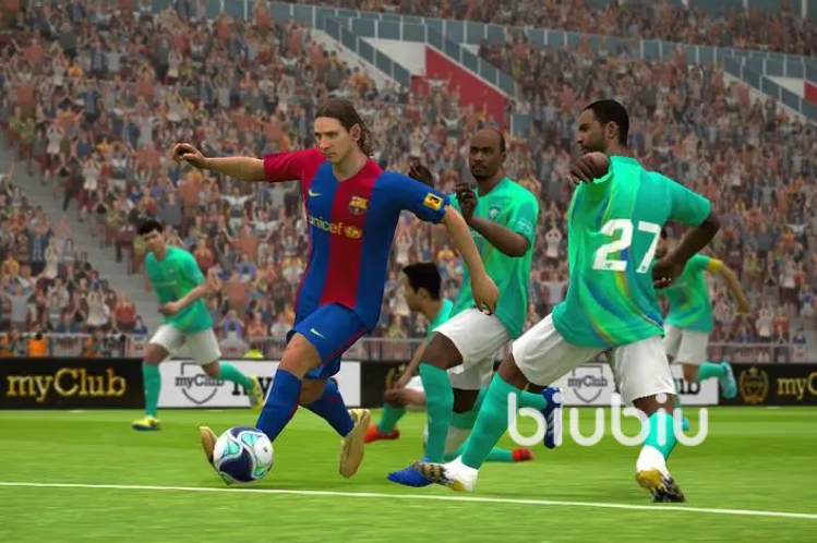 在踢球的时候大家可以看到很多逼真的特效,一边踢球一边欣赏以假乱真的比赛,不管是足球还是球员跑动过草地的时候都会碾压出一圈光晕,看起来质感很真实,好像大家真的进入到足球场上场比赛一样。为了让冲撞看起来更加真实,它还使用了物理引擎,撞击以后挖年可以感受到迎面而来的力量感。