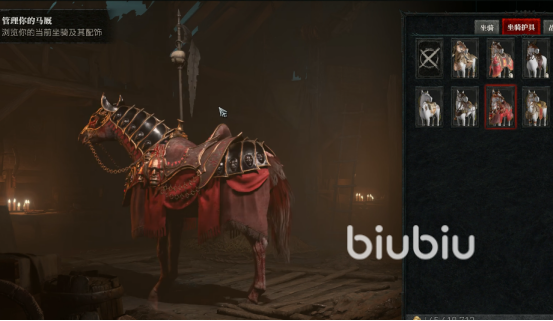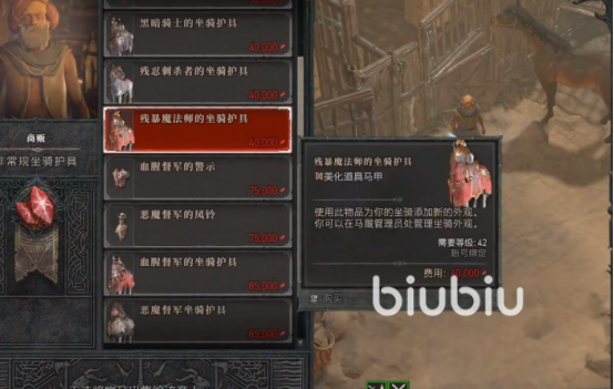 我们和巴基尔对话,他会展示所有的坐骑护具,比如残忍刺杀的马鞍包,残暴魔法师的旌旗,暗黑骑士的坐骑护具等等。这些是坐骑的时装,玩家只有给自己的战马穿上,战马才能变成PVP坐骑状态。如果我们没有战马,想要买一匹的话,可以去城市中的马厩,找商人购买马匹。每一匹马的形态、外观都不一样,玩家们可以根据自己的喜好购入合适的坐骑。当然,为了能在PVP对战中,打出华丽的招式,不出现掉线等问题,可以试试biubiu加速器,目前对于新人注册还有3天免费会员加速试用的名额哦。