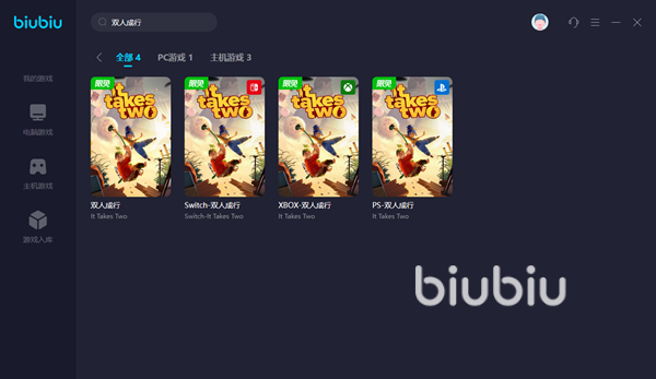 在打开软件并且登录加速器账号之后可以先看看左侧的游戏库中有没有大家喜欢的作品,或者直接搜索双人成行即可。这里大家可以看到目前推出的几个平台,除了PC版本之外,另外三个主流的主机平台也是同样支持的。这里小编需要说一下,主机平台版本的游戏是免费加速的,双人成行PC版一般需要开通会员,有的时候也会推出一段限定期限的免费加速活动。