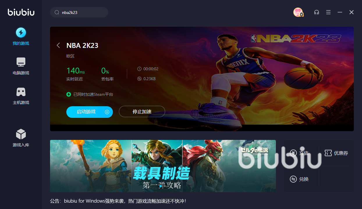 新用户免费使用biubiu加速器三天,助您畅享NBA 2K23的精彩。通过biubiu加速器,您可以体验低延迟、稳定的网络连接,提高游戏的实时响应和流畅性。不再受网络问题困扰,充分展现您的篮球技巧,与其他玩家一决高下。享受无阻碍的游戏体验,掌控比赛的节奏,成为NBA 2K23的巅峰玩家。