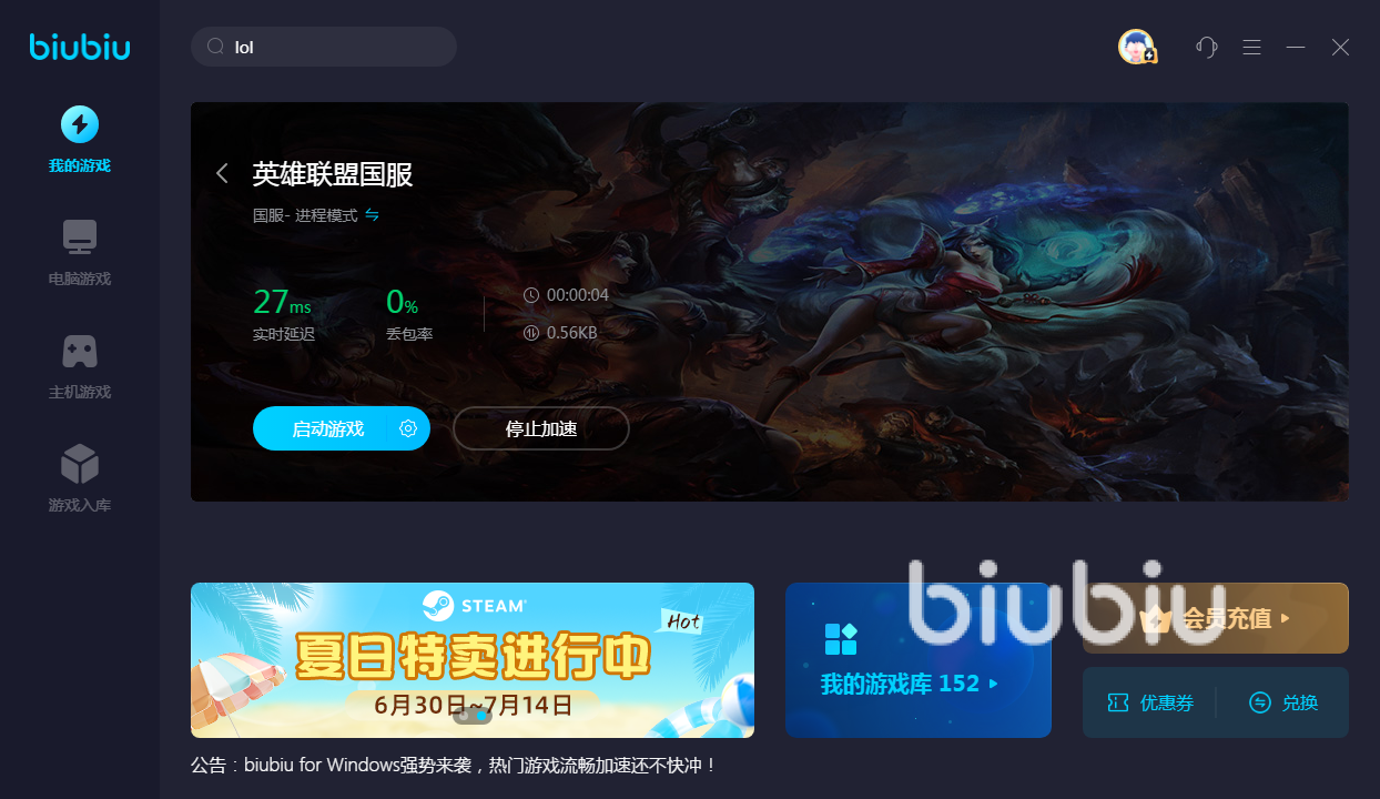 英雄联盟这款游戏能够在竞技方面做到极其公平,即使玩家选择各种皮肤也不会影响各项数值。所以在游戏过程中个人操作以及对英雄细节理解和装备搭配、团队组合等方面就能起到至关重要作用。但是在操作过程中对网络要求极高,即使是稍高一些的延迟,都有可能导致一场战斗失败,进而直接影响胜负,更别说出现鼠标卡顿,更是很严重的问题。这时利用biubiu加速器对网络优化以后降低延迟,并且大大降低卡顿出现几率,就成为提高胜率的关键。