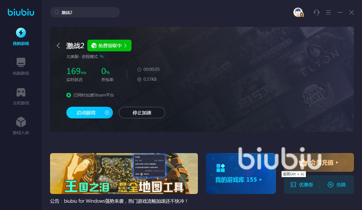 利用biubiu加速器对该游戏进行加速之后,通过加速通道登录就可以有效解决闪退问题。同时还能够提高登入时载入速度,各种地图切换时速度以及延迟等,这些和网络相关问题在一键加速以后通通得到有效改善。这就是该软件最核心功能,也是玩家纷纷选择其作为端游加速辅助软件的重要原因。另外价格方面优势和众多福利也是不可忽视一点。会员价格方面极其优惠,而且最新注册用户还有三天免费体验期,以及首次充值折扣价格等诸多福利。