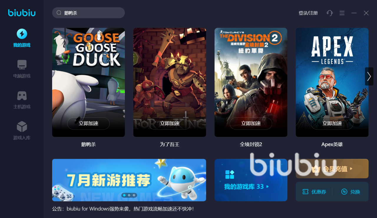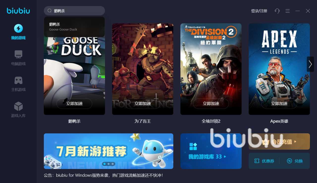 本文带来鹅鸭杀需要加速器吗的相关分析,市面上加速器软件不少,biubiu从中脱颖而出,得益于几方面原因。首先,它操作简单,没有繁琐的设定,一键点击加速即可。其次,这一工具功能强大,支持海量的游戏加速,覆盖了国内外的全部热门端游。第三,运行稳定,加速效果好。它采用国内最先进的技术,通过超多网络节点实时加速。