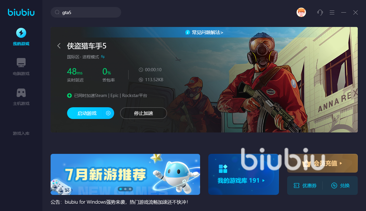 对于玩gta5需要加速器吗,这个问题小编给出的答案是肯定的,因为在体验的时候会有很多的指令操作,比如射击以及驾驶载具都是时候,要是网络不给力,那么体验肯定不会好,所以biubiu的这款加速工具,大家就一定不要错过了。