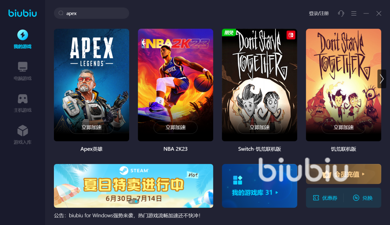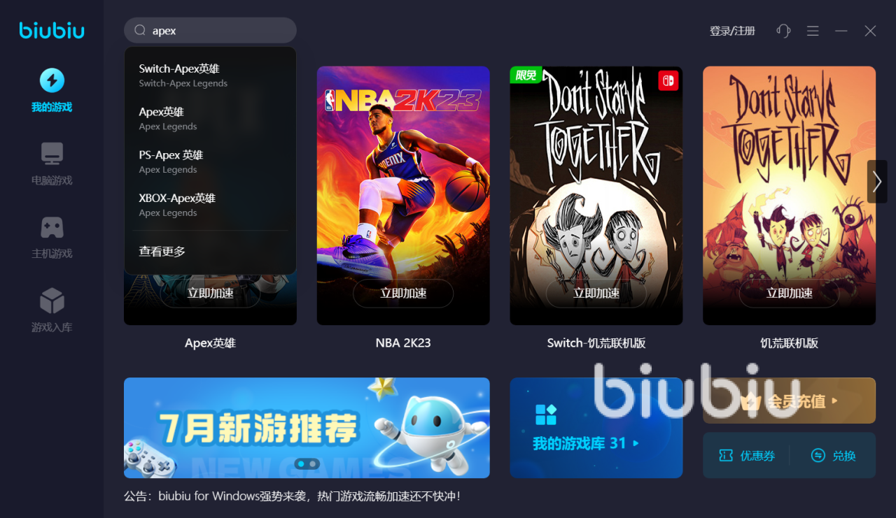 2023年07月07日 15:51 来源:破圣与素利拍震撼射击火拼游戏,apex在国外呼声很高,呈现星空传奇对抗。它现在登录了多个平台,支持实时联机多人竞技。国内玩家们对这款游戏又爱又恨,它有时候很卡。到底游戏apex要加速器吗?答案是需要的。apex国外服务器主要服务国外玩家,而国内游戏响应速度慢,经常出现卡顿、丢帧,大家需要配置biubiu加速器。
