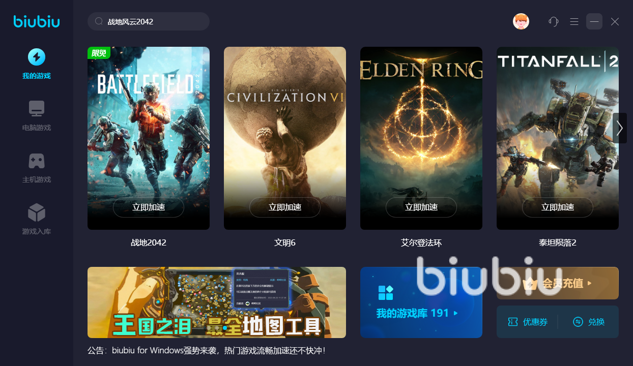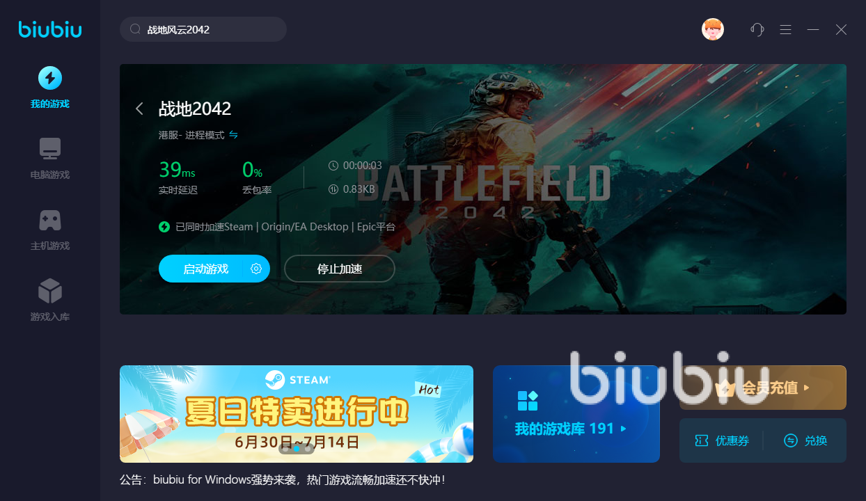 2023年07月10日 15:34 来源:洛萨再火精灵6在一众射击玩法的游戏中,小编个人对于战地风云2042是非常满意的,不仅仅是在玩法方面做的非常不错,同时其画面的构造也是相当的真实,今天小编就来和大家介绍下战地风云2042需要加速器吗,如果说自己的网络环境很差,经常会有卡顿以及延迟等现象的发生,那么肯定是需要去用到相关的工具来帮助自己的,考虑到游戏目前也是没有国服,所以国内的小伙伴想要去体验的话,使用biubiu的这款专线加速工具就能起到稳定网络的作用。
