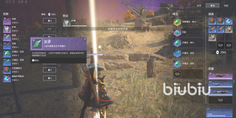 无论来自哪里,其实每个人物都可以使用任意武器,一上来的话肯定是先选择好出生点,在刚玩的话建议先选一些边缘地区作为初始地,因为高资源区人太多势必会有惨烈的一波混战,如果你不是高手的话,没必要去碰运气。一上来无论如何先找兵器,建议最好先阔刀在手,因为在低段位时,很多玩家不会振刀或者说掌握不好,这种重型刀具攻击的话优先级判定更高,敌人拿别的武器和你对拼会被打硬直,你直接就两下普攻再蓄力来反复循环,前期遭遇敌人基本可以单杀,除非一开局对手就有很好的护甲没秒掉被反杀了,那只能说这把运气实在是太过拉垮。