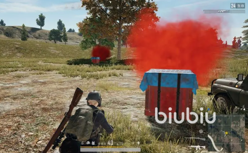 首先大家要了解空投的机制以及空投里面有什么,它的外观具有很高的辨识度,大体为红色且冒着红烟,如果里面的东西被拿了,那么烟雾也会慢慢散掉。接下来了解一下它的机制,在跳伞结束以后,过一会就会出现安全区,然后飞机就根据随机的航线掉落空投,一到两个不等,一般来说会掉在安全区里面。