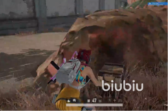 如果在搜资源的时候,我们遇到了敌人,可以借助这里的巨大石块,娱乐设施进行躲避拉扯。建议打架的时候,切换成第一视角来开枪。这样更能保证命中率。如果没有掩体,我们可以先扔烟雾弹,然后在烟雾的边缘找机会击杀敌人。