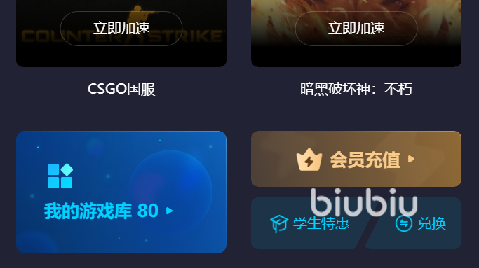 如果说加速器使用需要收费的话,biubiu加速器则是让大家先试用的,起码让用户知道好不好。推出了新用户注册免费使用加速3天的活动,三天过后再决定要不要续费了。然后对于首充用户就有优惠了,还有学生也是有特惠的,价格更低,让每一个玩家都能用上性价比更高的加速器。现在平台支持到的游戏其实很多了,大家能够感受到游戏库一直都是在更新的,变得越来越多。随着新游戏的推出,相信是能够满足到新老用户不一样的要求。