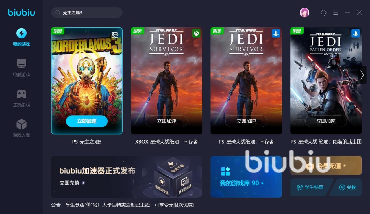 虽然厂商的优化做的很好,但如此大体量的游戏,一直维持在高画质状态,对网络的品质,会有更高的要求。而维持高网速,减少延迟波动状况,专业的软件就变得不可或缺,biubiu加速器就是不错的一个,其中备受好评的加速服务,实际的使用流程,也做了简化,打开软件后,检索无主3专属的加速入口,接着点击立即加速就可以了。如果你之前没用过biubiu加速器,那么现在下载体验,还会享受新用户注册免费使用加速3天的福利。