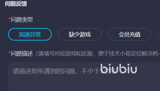 另外,在biubiu加速器上还有专门的问题反馈窗口,就是在平台上的右上角,一个戴耳机的图标,点击去大家可以根据不同的问题反馈问题。另外,对于游戏上来说,可能很多游戏搜索不到的情况下,那么这时候就需要大家找biu仔反馈了。为了更好的用户体验,所以福利这一块肯定不会少了大家的。新用户注册免费使用加速3天,以及限免的加速,大家到时候可以在平台上看看有没有合适的游戏吧。