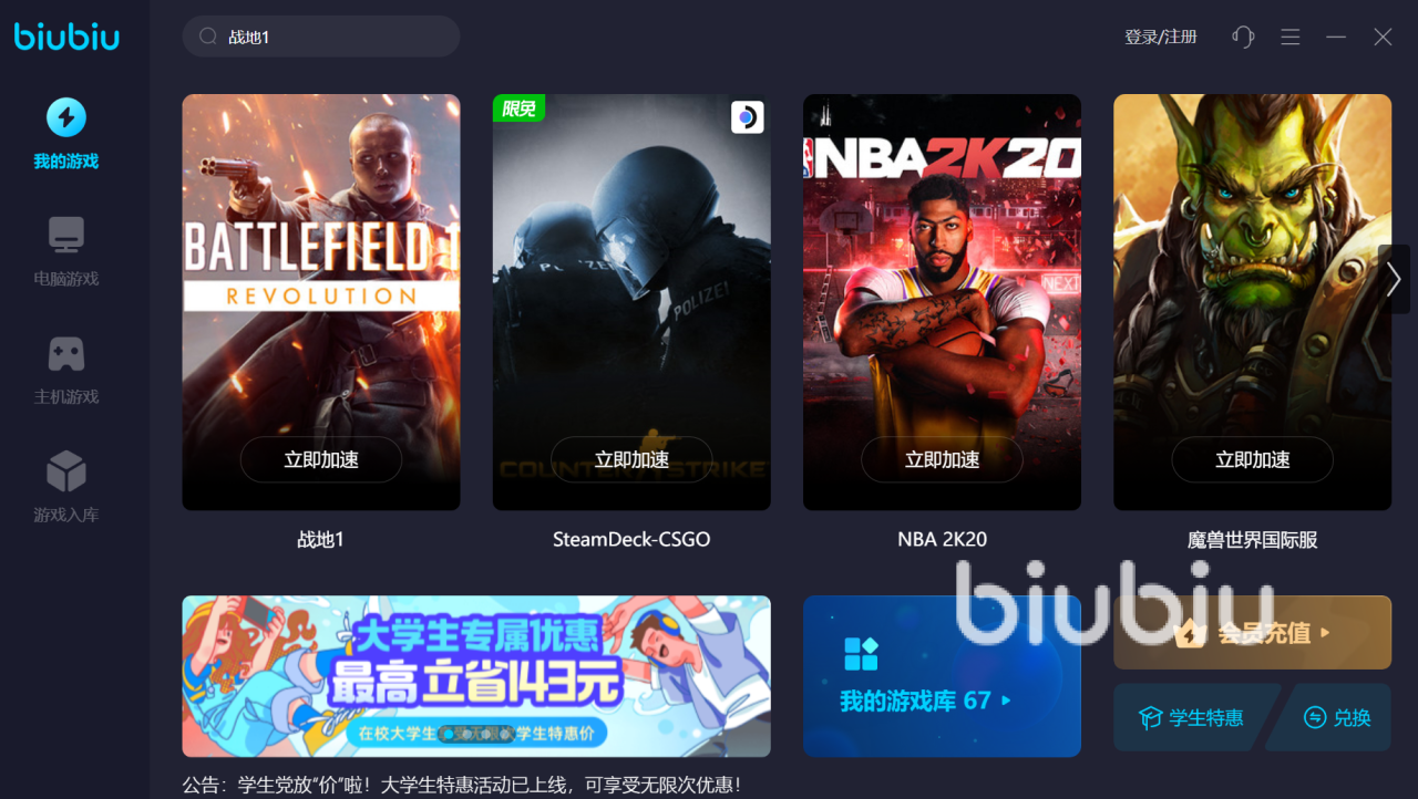 细心的玩家可能从上边的图片中观察到,很多的版本也推出了限免的活动,这可是给大家了解biubiu加速器的一个非常好的机会。不管是操作步骤还是软件的其他特色,你都可以了如指掌。除了可以给游戏加速之外,还给各位玩家准备了海内外热门的经典游戏,喜欢哪个都可以尝试,推出的游戏社区论坛,会有超多的大神在里边分享自己的游戏技巧跟通关心得。