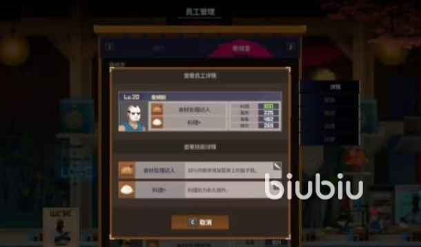 当寿司店做大做强之后,为了有更好的服务效果,玩家是需要招聘店员的,而这个筹备就是跟员工有关,就是他们的一个属性值。当玩家选择派遣员工去获得选定的材料的之后,能得到的物品数量也是跟这个值有很大关系的。