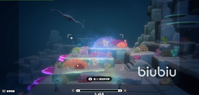 本作仅仅在特定支线时可以触发相机功能,玩家按空格键即可进行对焦,在对象进入镜头时锁定,确定拍摄就能完成照片任务,整个流程下来非常简单,连曝光以及虚化等功能都没有,可以说是简化到极致的玩法。