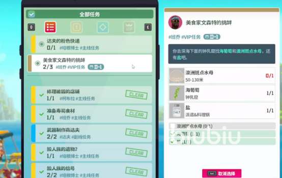 我们在钓鱼的时候,会收到美食家文森特的短信,他表示需要让我们去钟乳窟找海葡萄,澳洲斑点水母和盐。之后我们可以给达夫打一个电话,顺便接一下他的任务,帮他找到掉落在深海的手办。