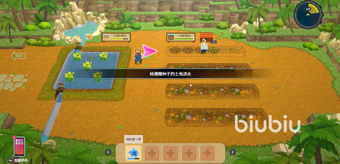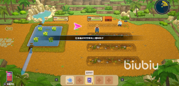 其实很简单跟着剧情来就行了,玩家在开启门店后接到农夫奥托的一个电话,他会带你去农场教你怎么种植,其实方法也很简单,在存物箱中使用种子进行播种,然后开始浇水就可以等待收获了。