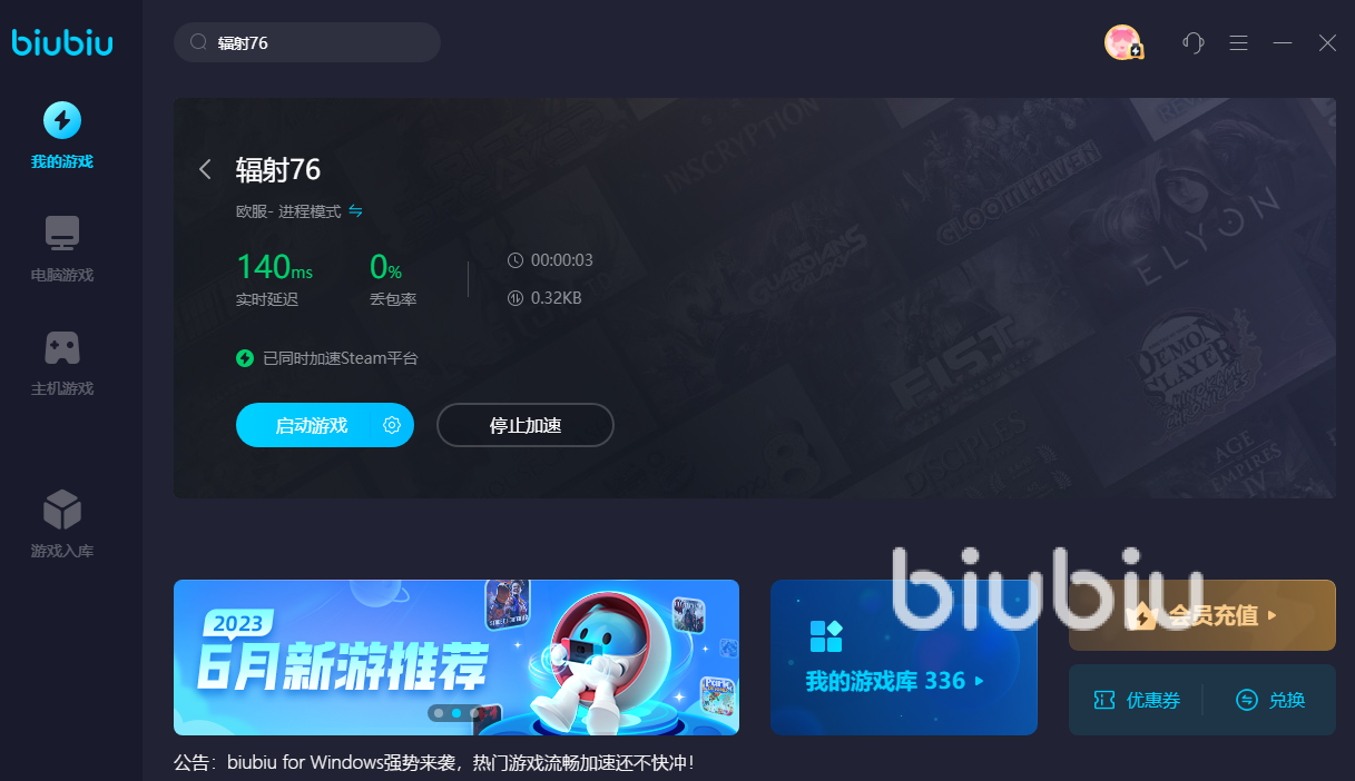 2023年07月19日 18:39 来源:撒旦旦嘟嘟利4辐射76作为一款多人在线rpg玩法的游戏,很多玩家对此都是较为喜欢的,在游戏中玩家能够去自由探索这个广阔的世界,同时彼此之间组队进行pvp作战,下面小编就来和大家说说辐射76掉帧严重怎么处理,如果说在游戏的体验过程中,遇到了网络卡顿情况严重,或者是延迟数值很高的现象,那么小编的建议是去使用biubiu加速器,作为专业的游戏加速类工具,其在优化用户体验方面做的可是非常不错的,大家要是对此较为的感兴趣,自己也是想要去解锁体验的话,那么就一起来看下它究竟有哪些优势吧。