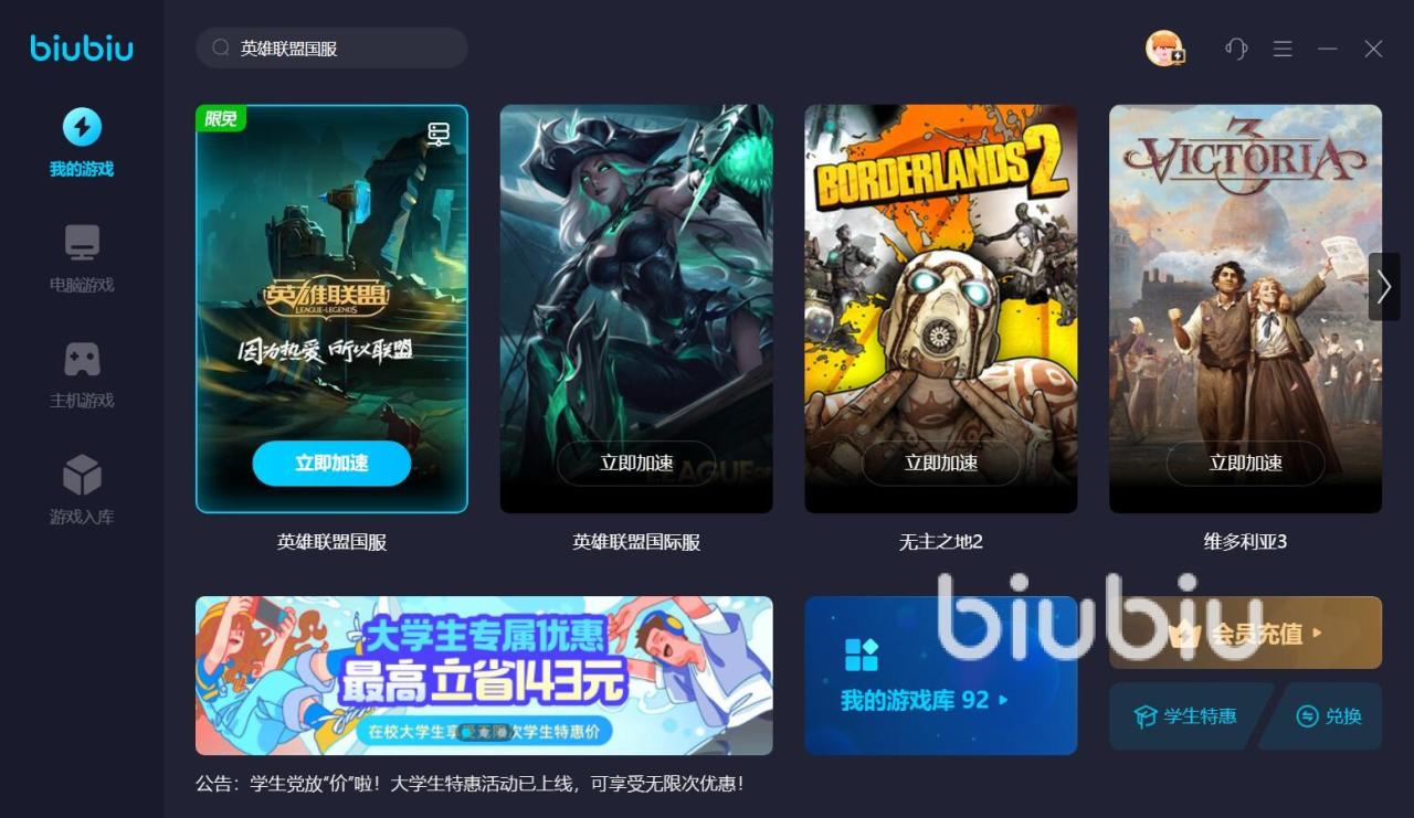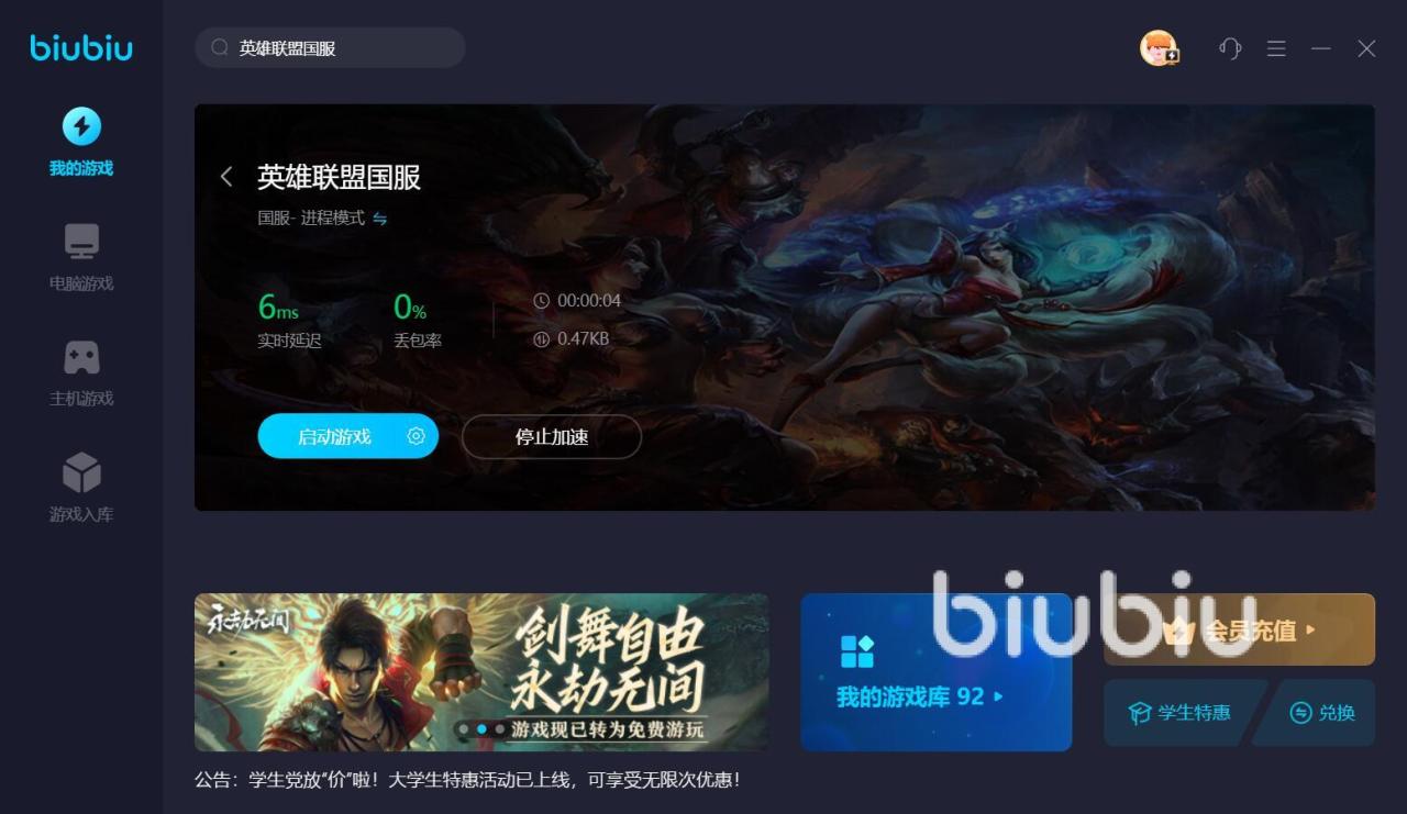 以上就是为什么lol会突然掉帧,帧率越高人物移动和释放大招时,就会越丝滑,击中敌人的概率也就更高,如果你还在被掉帧困扰,那么可以用biubiu加速器,去为其进行专线处理,让你享受到更优异的视觉效果,帮你轻松拿下对手。