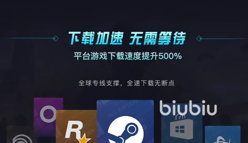 首先要想玩上它的话,就必须进行下载,小编建议大家可以将它放在机械硬盘里面,这样数据资料会保存的更加完善的,另外biubiu可以大大提升大家的下载速度,幅度能达到五倍左右,这都得益于它拥有海量的节点能选择,保证加速不断。