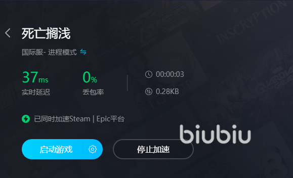 虚的不说,从图中玩家可以看出来死亡搁浅整个游戏是可以正常加速的,而且玩游戏的过程中,玩家也能正常监控biubiu的运行,甚至连加速器的内存都很小,一分钟就可以搞定下载和安装,也是极大程度的避免玩家因为biubiu运行导致内存运行不足的问题。