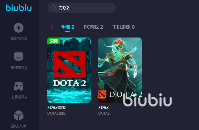 biubiu加速器使用方法也是很便捷的,没有太多花里胡哨的步骤,在下载完成之后,我们直接启动,首页搜索DOTA2就可找到对应的游戏,会有两个版本,分为国服以及国际服,玩家们直接选择想要体验的版本进行加速就可以了。