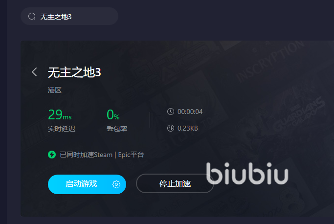 点击下载就可以快速的下好biubiu程序包,根据指引安装过程也会很快完成,整个操作体系都做的非常简便易懂。等到注册好账号了,就可以搜索本作进行加速体验了。不仅是可以提供PC端的加速服务,主机端这些都是可以的。