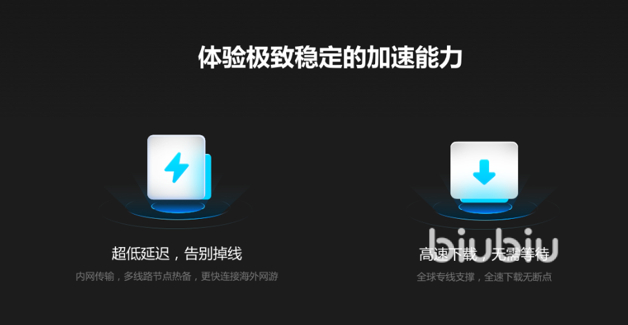 其次biubiu本身就可以对这个平台进行加速,下游戏的时候更是可以帮助其提升500%下载速度,这样就可以满足使用者对于各类型游戏的需求,使得安装变成一件简单的事情。而且现在biubiu有着新用户免费使用3天的活动,体验起来就会感觉更棒了。