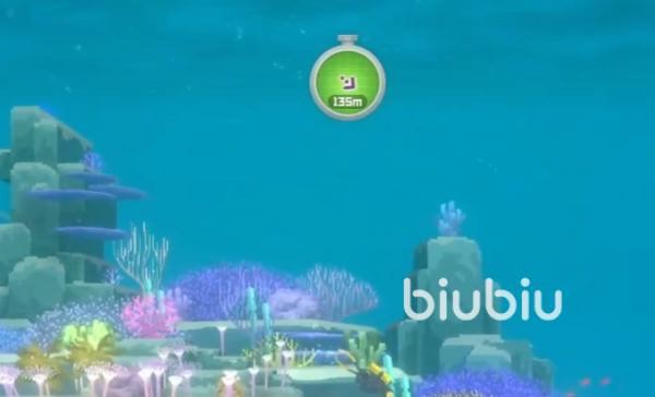 由于目的地在很深的地方,所以如果游到一半发现氧气快不够了,一定要提前在附近找到增加氧气的瓶子,先补充好氧气再继续向下潜。到右边大概八十米深的地方,会有一些乌贼出现,这个时候抓捕时注意它会迅速向前躲避,并且在后方喷一大堆墨,如果我们进到墨的范围就会看不清东西。在乌贼出没的地方再向下一点点会到达雷达目的地附近了,那是一个被许多石头堵住的洞穴,并且石柱上刻印着我们看不懂的文字。