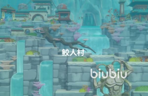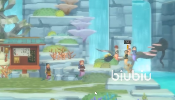 我们先到达地图的下层在巨型的鲛人雕旁边有一群鲛人,与其中一个有感叹号标志的NPC对话,她会告诉我们她们的球被一只巨口鲨吞掉了。我们往左前往蓝海一直往左走,走到底之后向上游就会发现一只巨口鲨,我们将它击杀掉之后气球就会自动收获到,之后再与那群孩子对话就完成任务了,这个时候右下角有一个一百的进度条就会增加一点点。
