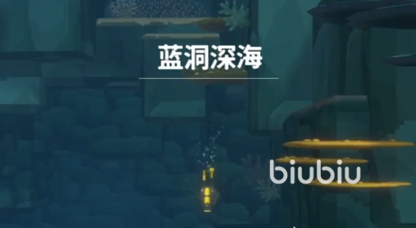 这个时候我们可以按雷达的方向去前进,在经过鲛人档案馆后还需要继续往下走。在潜到了将近一百二十米左右,增加氧气的方式就会多了一个,在附近会有一个泛着蓝光的贝壳,我们走到它附近长按空格键也可以增加氧气。在大概135米的深度系统就会提示我们到达了蓝洞深海,进入这个区域后周边的光线明显变暗,这个时候头灯就会自动亮起。