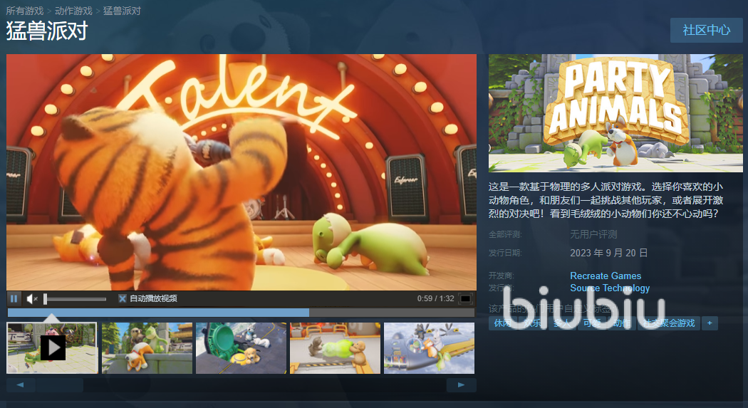 在STEAM平台上这款游戏已经有了一个新的名称,由原来的动物派对改成了现在的猛兽派对。在详情的页面表示着这款游戏虽然尚未在平台上推出,但是计划发行日期已经确定,大概还有八周即可解锁游戏。