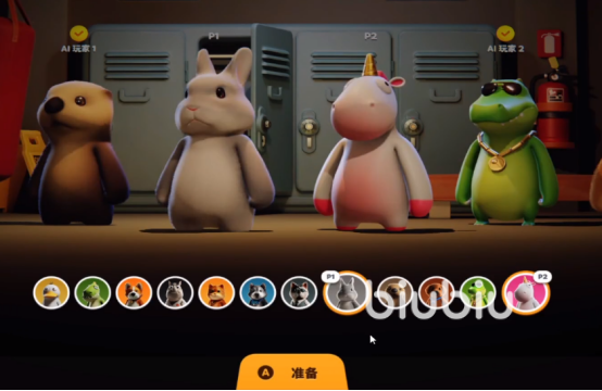 之后,我们就进入了准备的地方,在这里,玩家可以选择自己喜欢的动物,比如教学中使用的柯基尼莫,或者可爱猫猫玛奇朵。玩家选择后,就需要点击下面的准备,等着进入游戏了。