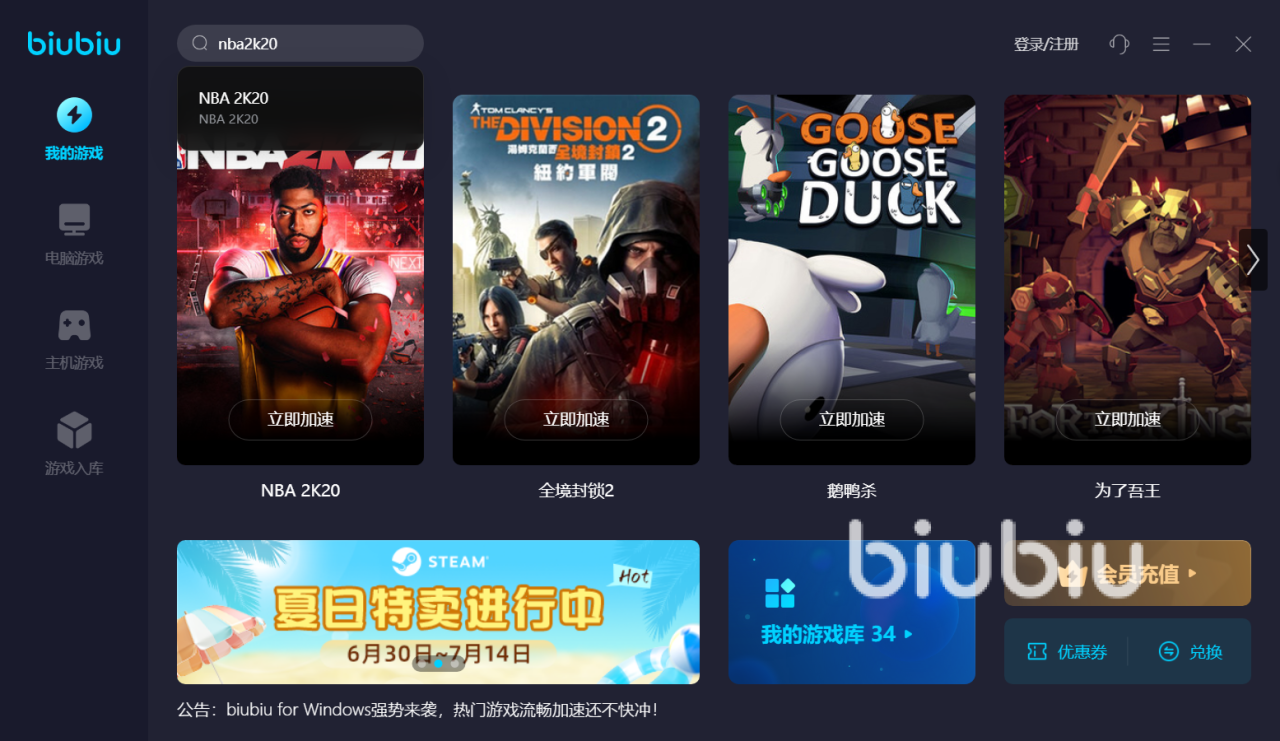biubiu物美价廉,使用体验好。它推出了“新用户前3天免费”的长期活动,这一福利非常好,玩家们一定要把握前三天的免费使用期,感受一下软件的便利——一键智能加速模式。它限时活动也在开启中,为主机类游戏实时加速,现在已经覆盖了STEAM、PS等平台。