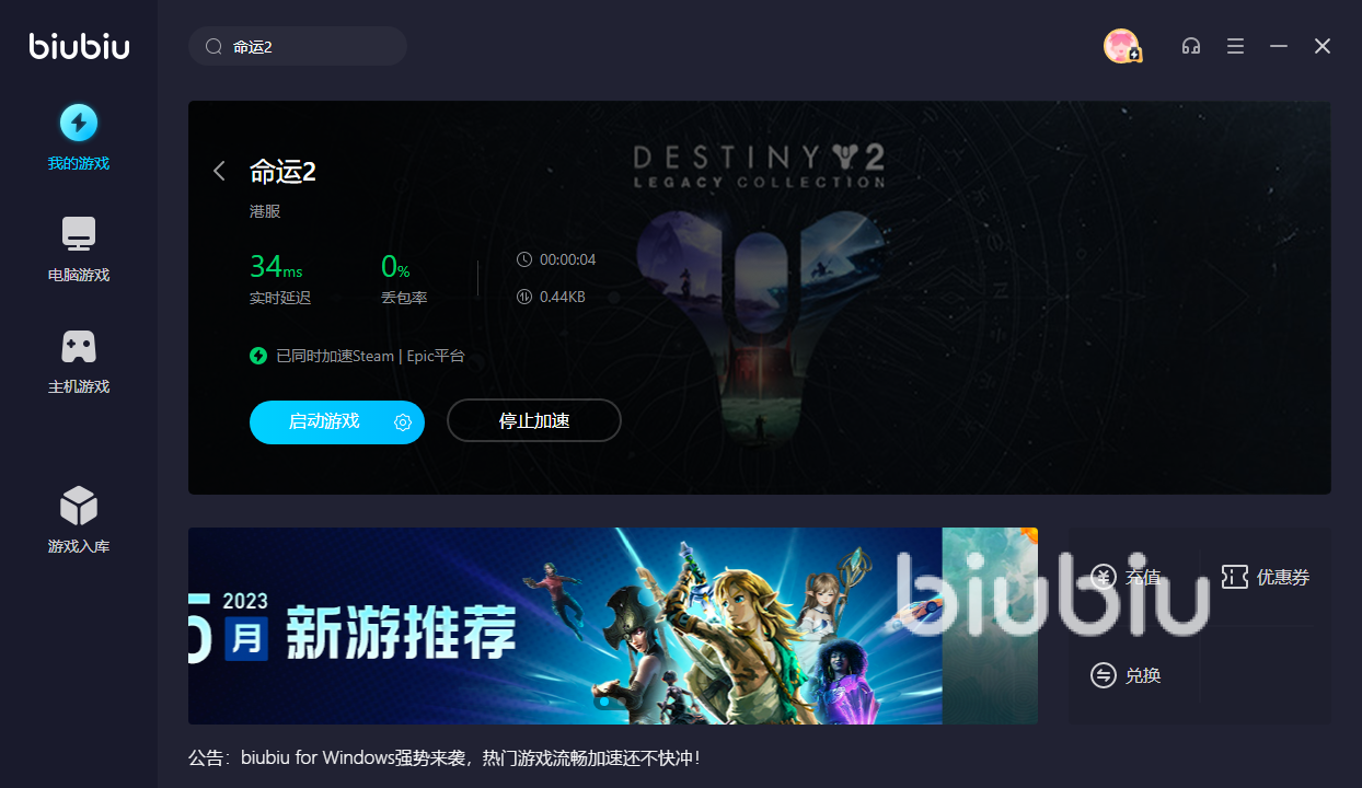 2023年07月25日 11:34 来源:原始欲毛球命运2作为一款射击玩法的游戏,它里面的玩法自然也是十分的丰富,玩家能够去运用各类不同的武器来击败敌人,下面小编就来和大家介绍下命运2掉帧怎么办,如果说在游戏的运行中,遇到了类似的情况,自己无法及时的上号体验,或者是在战斗过程中遭遇掉线,那么最好的解决办法就是使用biubiu加速器,不仅能进一步帮大家稳定网络,同时也不用在担心会存在无法加载的问题,下面就来看下它到底有哪些优势吧。