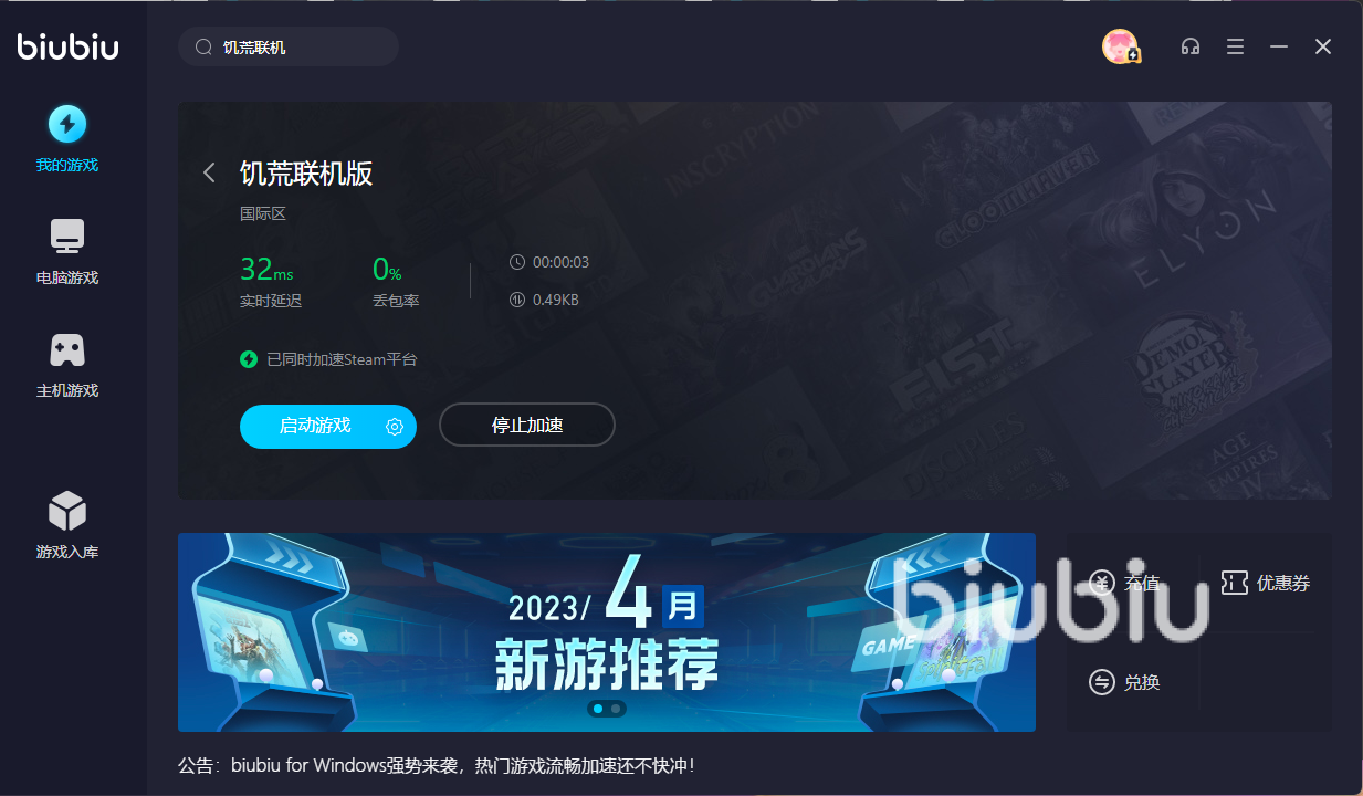 在游戏中还有许多隐藏地点、资源和生物等待着大家去探索和发掘,可要是自己的网络环境很差,动不动就是卡顿或者是延迟高的话,那么就难受了,而这个时候小编建议去使用biubiu加速器,因为它除了能稳定用户的运行外,在支持的游戏资源上也是十分丰富的,不论是主机还是PC都是能够通过它来开启加速服务,此外自动匹配与切换节点,让用户的网络连接变得更加稳定顺畅。