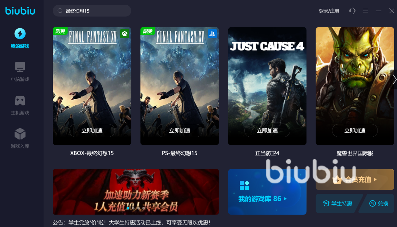 本次给大家分享的最终幻想15间歇性卡顿怎么办,这个问题的全部解答到这里就全部的结束了,游戏时候遇到网络问题真的挺让人头疼的,好不容易品出来的成绩一下子收到了很大的影响,快来尝试下biubiu加速器吧。