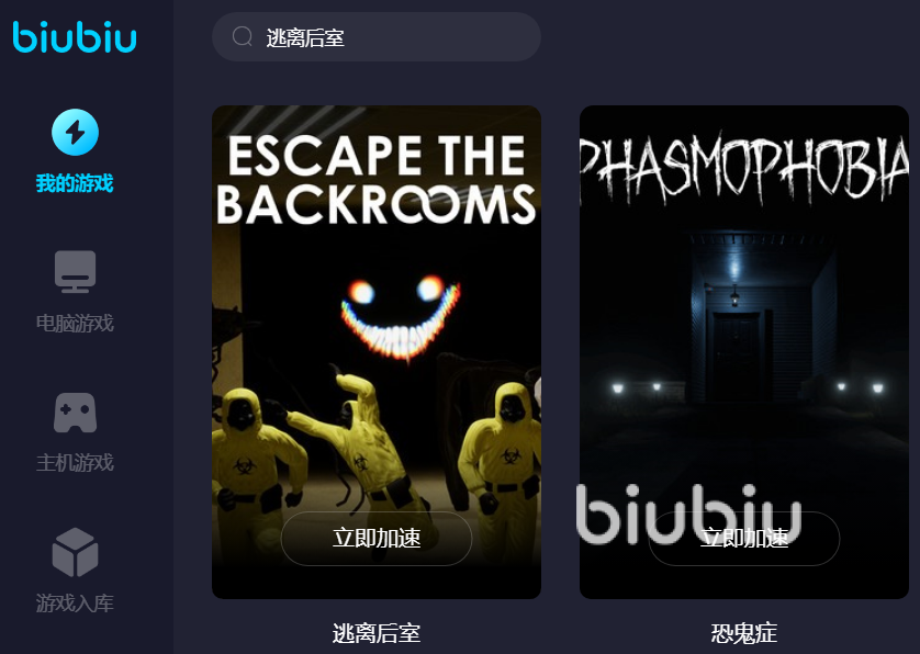 一般来说外服游戏玩的时候加载页面缓慢,有时候玩一款游戏开头就很困难,特别浪费时间了。所以在运行前最好是开启biubiu加速器,能够提供帮助。平台会在极短的时间里匹配上最好的网络给大家,问题得到解决,游戏本身也是全面进行了优化升级,简单又高效。操作也十分便捷,搜索到游戏后直接添加进行加速,降低延迟,减少丢包,逃离后室的话其实还好,比实时的竞技性游戏在各方面上会有更好的体验。
