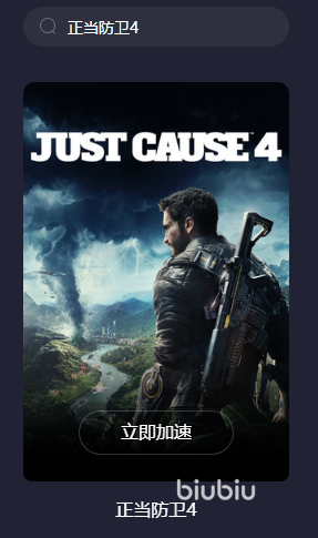 在正当防卫4当中,玩家们会继续进入到一片广阔的开放世界内开启冒险,敌人也会在这一代作品当中更加的狡猾,对手也将使用更多武器来攻击玩家。所以综合来看的话,游戏的挑战性得到了增强,而枪战的设定一般也需要玩家根据环境快速做出反应,因而一旦游戏的网速环境发生了较大的变化,玩家们就需要使用加速平台来进行改善,所以想要获得更好体验的各位,推荐大家使用biubiu加速器。