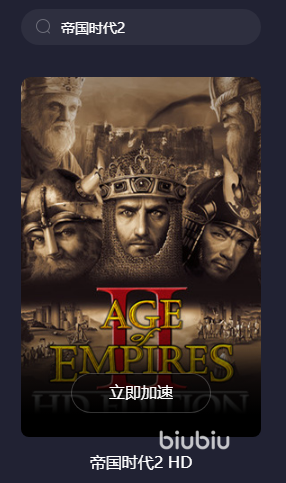首先,还是非常推荐玩家们来使用加速器的,因为目前帝国时代2除了游戏的单人剧情模式以外,更多的乐趣就是通过联机匹配的方式与其他玩家线上进行对决了,而在这样的高强度竞技下,玩家们的网络状况一旦不稳定的话,就可能会在前期的发展当中落后于敌人,导致游戏的整体优势更偏向于对手。所以想要避免这一情况的各位玩家,当前可以使用biubiu加速器,此平台当中开放了针对帝国时代2的加速服务。