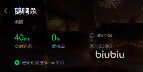 这款休闲游戏对于配置要求并不高,但是网络情况确是关键,大家也不想玩着玩着掉线被淘汰吧。因此有这方面顾虑的小伙伴就可以用上biubiu加速器了,特别是针对于一类外服游戏的,效果尤为明显。网络不稳定一般是通病,所以在网络优化上平台能够进一步保证大家的延迟降低,游戏角色的操作上更流畅,而且玩鹅鸭杀时的语音也不会存在延迟或是炸麦等情况。