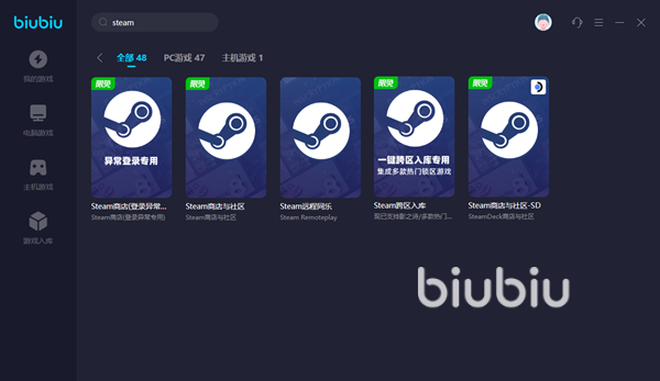 玩steam中的游戏开加速器才能够更加容易地获取流畅体验,使用steam平台本身也是如此。像刚才说到的商店社区打不开、平台无法登录等问题,都可以在biubiu中找到相应的解决方案,选择对应的加速功能并且保持开启就可以了。而且biubiu还支持了steam的远程同乐功能加速、steamdeck相关的加速支持,可以说是细微又全面,给我们带来了很大的帮助。