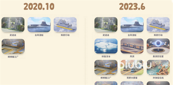 通过6月份的官方日志我们可以得游戏在正式发售时一共会有12张地图,除了之前在试玩版中小伙伴就已经接触过的武道会、台风潜艇、断箭行动以及棒棒糖工厂外,还新增了碎裂浮冰、风洞、黑洞实验室、荒野大镖客、炸弹投石机、低温警告、冬日酒吧、气球保险箱地图。