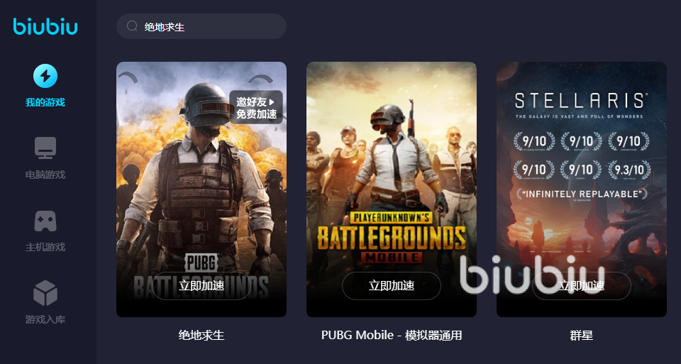 无论大家的电脑配置是高还是低,在体验游戏的状态时,经常会遇见电脑卡机状态,直接游戏卡死,动也动不了,这要是躲避的及时,没被敌人发现,还有生还的机会,要是被敌人发现,就需要重新开始了,成绩会跟随玩家的资料,为了避免这种情况发生,小编建议大家下载一个biubiu加速器,有了此款加速器以后,玩家在游戏的过程中,这些BUG都不会发生,biubiu加速器可以给游戏带来不一样的体验感,点击上方链接就能下载加速器了,搜索想要下载的游戏名称,即可加速,等待几秒钟就能看见游戏在进行加速,直接转换进入游戏即可。